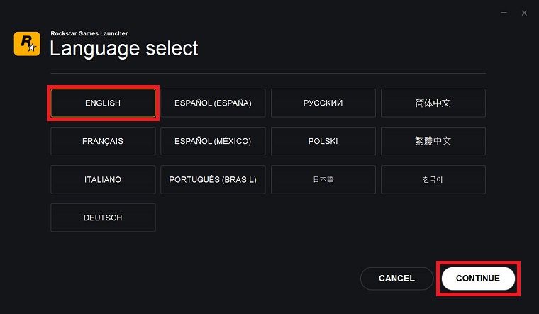 Step 2: Launch the newly downloaded âRockstar-Games-Launcher.exeâ, select your desired language, and click on Continue.