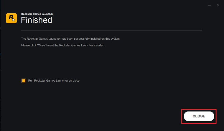 Step 5: Let the installation complete then click on Close to close the window. You can now launch and start using Rockstar Launcher.