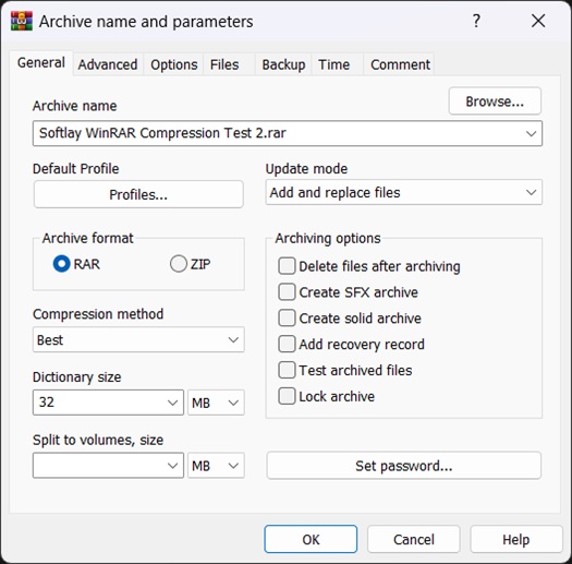 The Archive Format was set to âRARâ and the Compression Method to âBestâ for the best results possible.