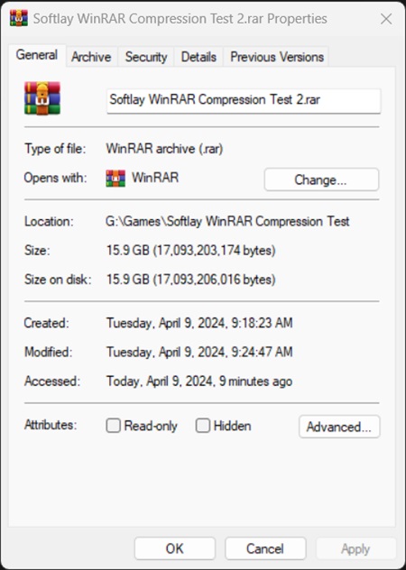 The final size of the archive after compression was 15.9 GB which is a whopping 3.4 GB less in size than the original folder and all of this was possible in just under 2 minutes which is the fastest and most efficient compression that we have seen so far in our tests with similar software.