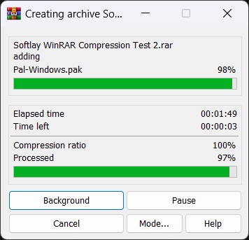 The total time taken for the compression was around the 1 minute 50 seconds mark for our PC which is fairly quick and had us surprised. This also depends on your PC hardware and the type of files that are being compressed.